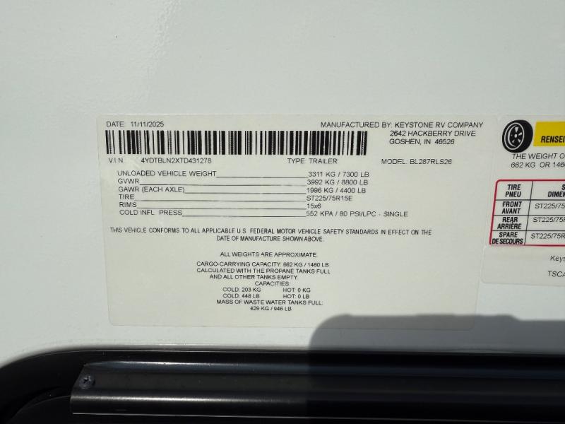 | VIN | 4YDTBLN2XTD431278 |