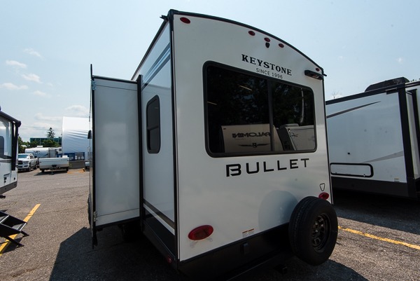 The Bullet Crossfire by Keystone are the perfect lightweight travel travel for rookie campers to seasoned RVers! Each one is built with a one-piece polypropylene underbelly, a fully walkable roof, and a high impact thermoset resin painted front cap for added durability. There is also a Dexter Torsion axle rubber ride suspension and Goodyear Endurance tires for a smooth tow plus a power tongue jack and power stabilizer jacks for easy set up. The interior will have you feeling right at home with deluxe night shades, updated Tranquil Timber decor, residential Beauflor vinyl flooring, and seamless kitchen countertops.