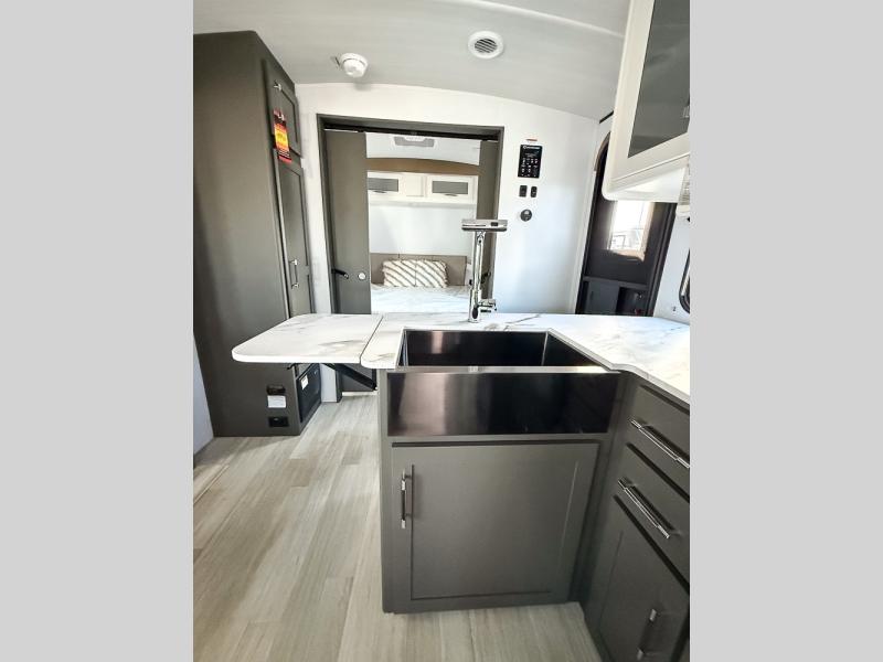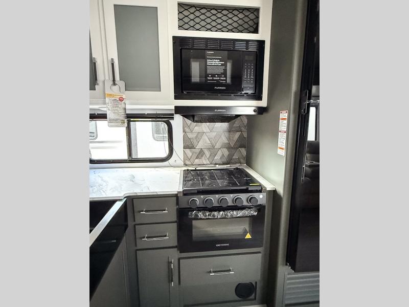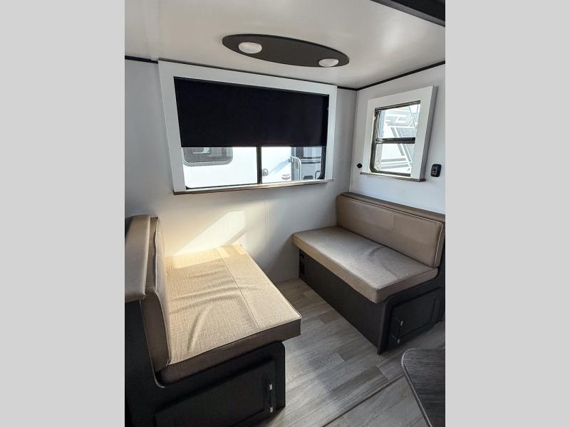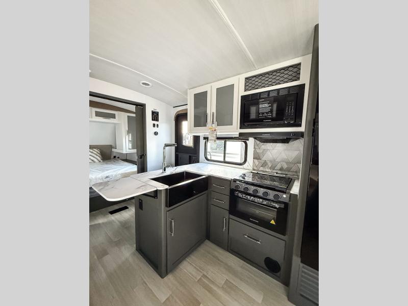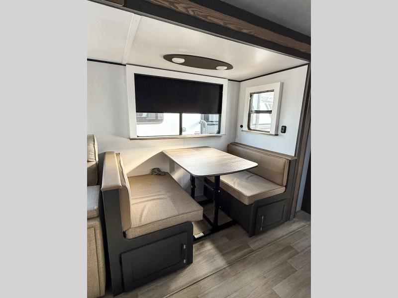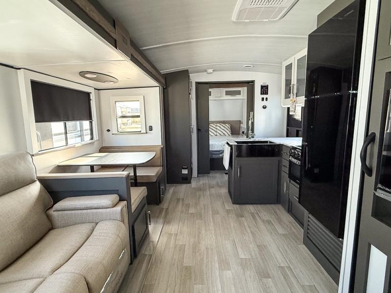 The Bullet Crossfire by Keystone are the perfect lightweight travel travel for rookie campers to seasoned RVers! Each one is built with a one-piece polypropylene underbelly, a fully walkable roof, and a high impact thermoset resin painted front cap for added durability. There is also a Dexter Torsion axle rubber ride suspension and Goodyear Endurance tires for a smooth tow plus a power tongue jack and power stabilizer jacks for easy set up. The interior will have you feeling right at home with deluxe night shades, updated Tranquil Timber decor, residential Beauflor vinyl flooring, and seamless kitchen countertops.