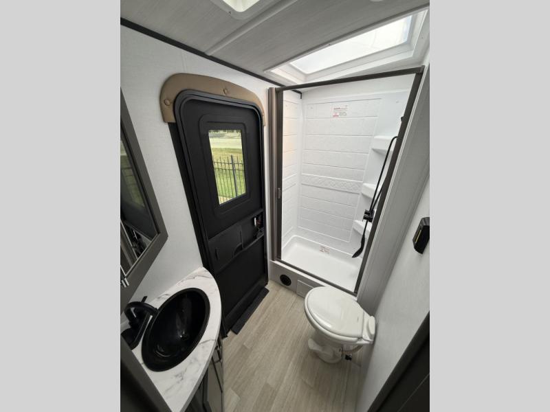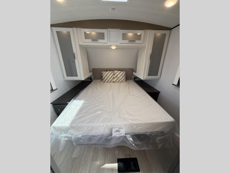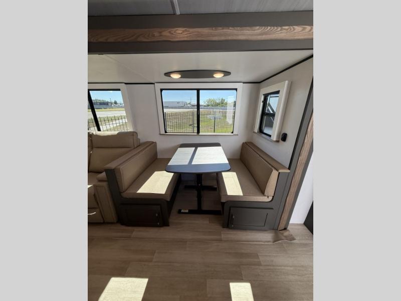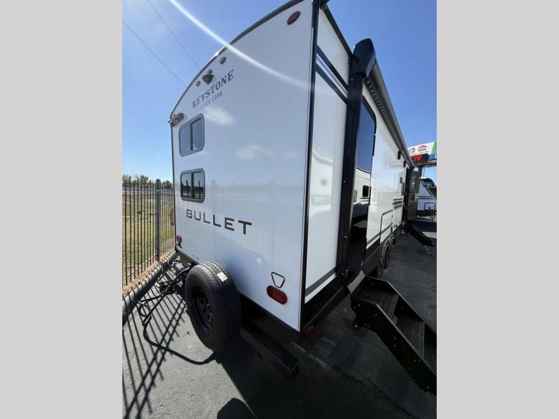 The Bullet Crossfire by Keystone are the perfect lightweight travel travel for rookie campers to seasoned RVers! Each one is built with a one-piece polypropylene underbelly, a fully walkable roof, and a high impact thermoset resin painted front cap for added durability. There is also a Dexter Torsion axle rubber ride suspension and Goodyear Endurance tires for a smooth tow plus a power tongue jack and power stabilizer jacks for easy set up. The interior will have you feeling right at home with deluxe night shades, updated Tranquil Timber decor, residential Beauflor vinyl flooring, and seamless kitchen countertops.