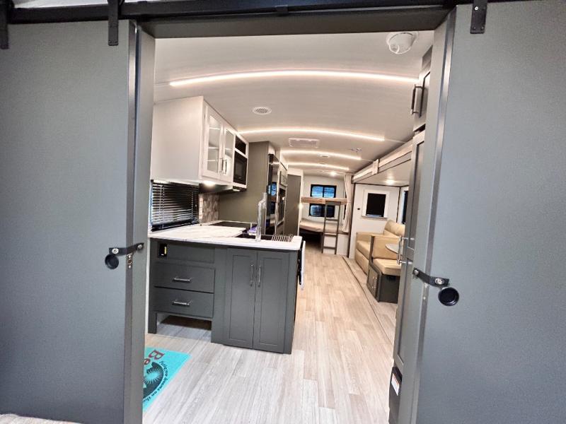 REAR DOUBLE BUNKS / OUTDOOR KITCHEN / TWO ENTRY DOORS / ALL POWER PACKAGE / SOLAR FLEX 220 WATT