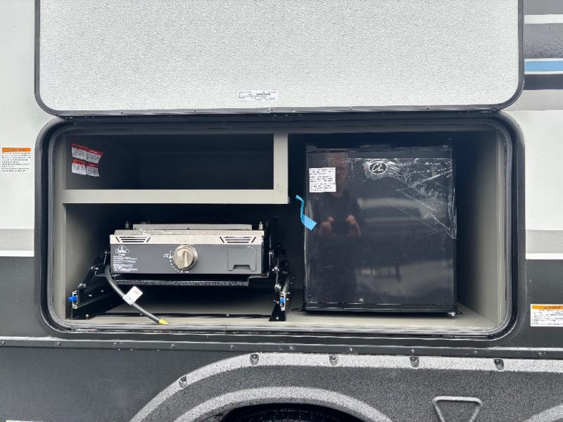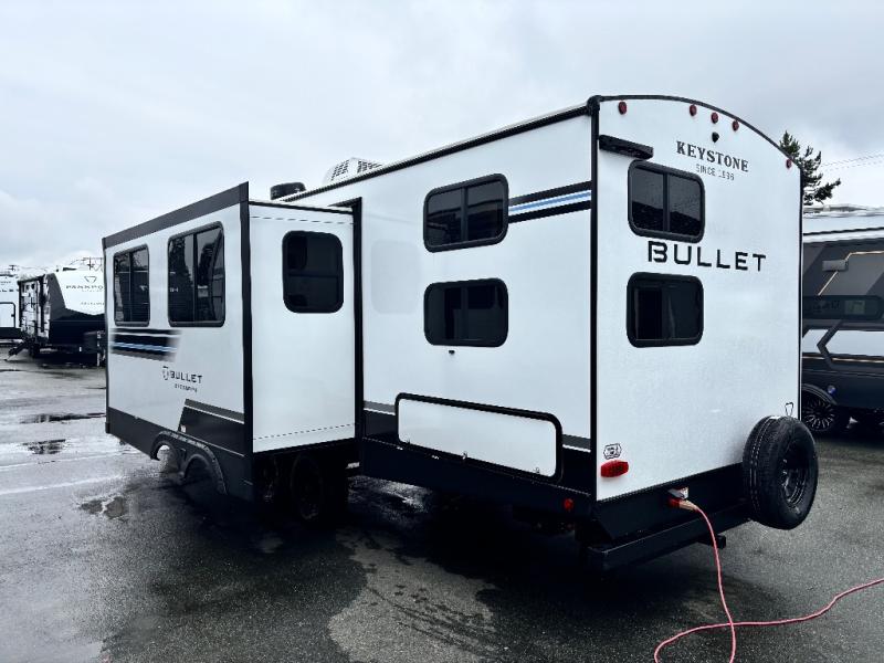 The Bullet Crossfire by Keystone are the perfect lightweight travel travel for rookie campers to seasoned RVers! Each one is built with a one-piece polypropylene underbelly, a fully walkable roof, and a high impact thermoset resin painted front cap for added durability. There is also a Dexter Torsion axle rubber ride suspension and Goodyear Endurance tires for a smooth tow plus a power tongue jack and power stabilizer jacks for easy set up. The interior will have you feeling right at home with deluxe night shades, updated Tranquil Timber decor, residential Beauflor vinyl flooring, and seamless kitchen countertops.