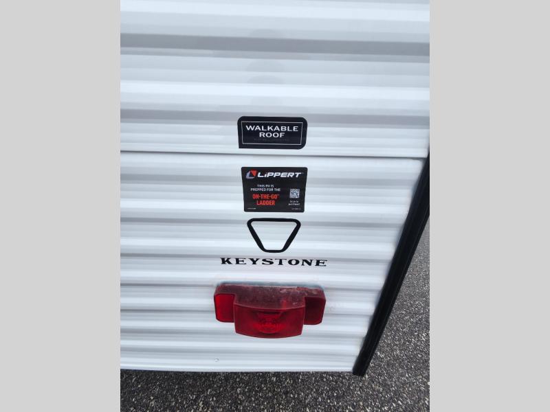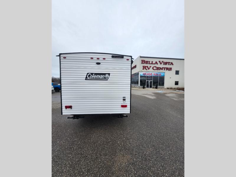 With any Coleman travel trailer, you will experience Keystone's quality throughout, plus enjoy lightweight towing to the campground or RV park. There is a walkable roof, tinted safety glass windows, and a power awning outdoors for an inviting space to relax. The friction hinge entry door is another convenience you'll appreciate, and there is Furrion backup camera prep if you want the option to make parking easier. Inside, you'll find blackout night shades, a 6' 6" ceiling height, bedside outlets, and many more comforts.