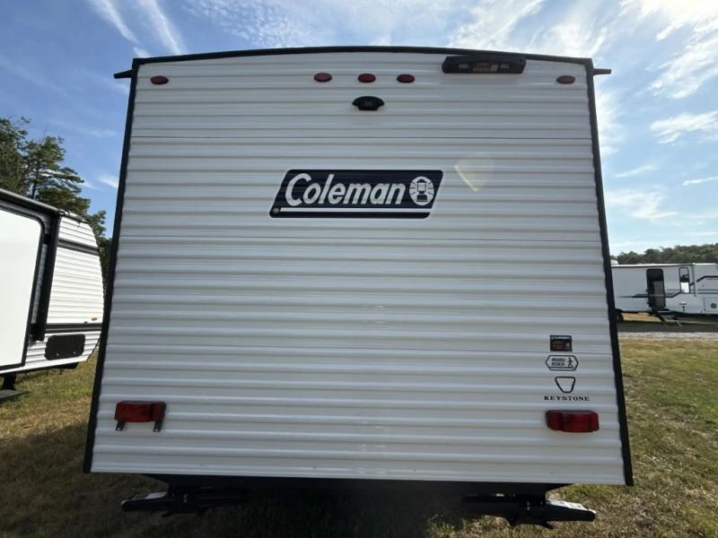 With any Coleman travel trailer, you will experience Keystone's quality throughout, plus enjoy lightweight towing to the campground or RV park. There is a walkable roof, tinted safety glass windows, and a power awning outdoors for an inviting space to relax. The friction hinge entry door is another convenience you'll appreciate, and there is Furrion backup camera prep if you want the option to make parking easier. Inside, you'll find blackout night shades, a 6' 6" ceiling height, bedside outlets, and many more comforts.