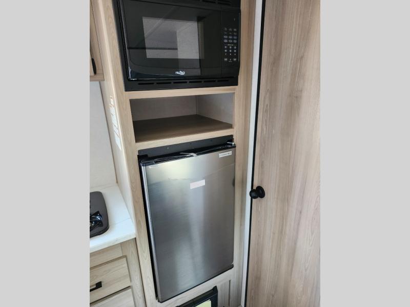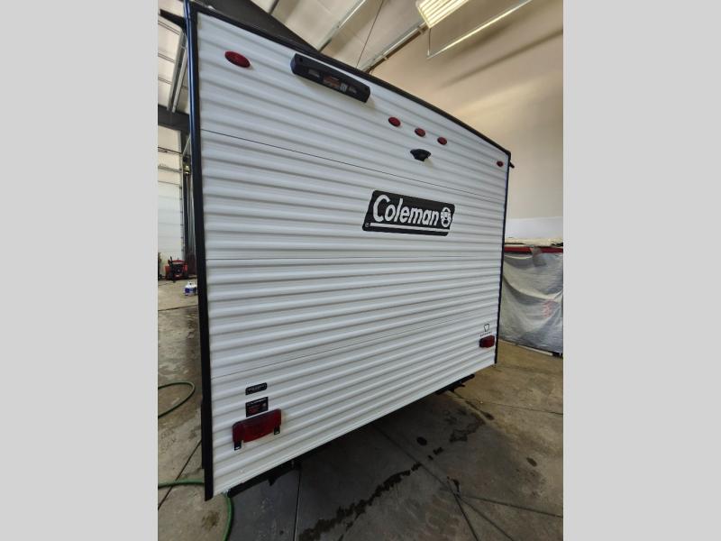 With any Coleman travel trailer, you will experience Keystone's quality throughout, plus enjoy lightweight towing to the campground or RV park. There is a walkable roof, tinted safety glass windows, and a power awning outdoors for an inviting space to relax. The friction hinge entry door is another convenience you'll appreciate, and there is Furrion backup camera prep if you want the option to make parking easier. Inside, you'll find blackout night shades, a 6' 6" ceiling height, bedside outlets, and many more comforts.