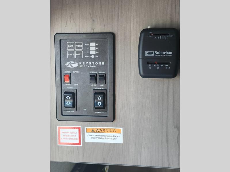 With any Coleman travel trailer, you will experience Keystone's quality throughout, plus enjoy lightweight towing to the campground or RV park. There is a walkable roof, tinted safety glass windows, and a power awning outdoors for an inviting space to relax. The friction hinge entry door is another convenience you'll appreciate, and there is Furrion backup camera prep if you want the option to make parking easier. Inside, you'll find blackout night shades, a 6' 8" ceiling height, bedside outlets, and many more comforts.
