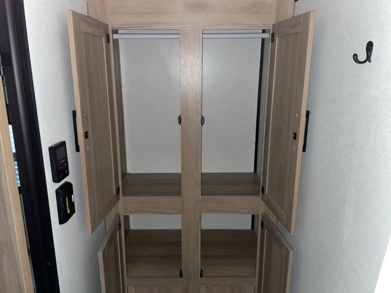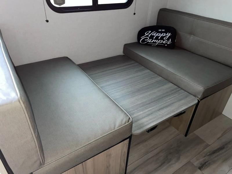 After making dinner on the two burner cooktop or microwave, you can dine at the booth dinette or outside under the 8' power awning if you brought along your camping chairs. Either way you will be comfortable and the dinette can even be converted to sleep one person if needed. After playing outdoors all day, everyone can return to get cleaned up in the full rear bath including a shower. There is even a linen closet and space for some clothes that hang. You may then fall asleep on the queen bed up front or the dinette once converted so you can start enjoying the outdoors again the next day.