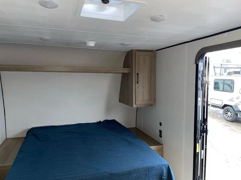 With any Coleman travel trailer, you will experience Keystone's quality throughout, plus enjoy lightweight towing to the campground or RV park. There is a walkable roof, tinted safety glass windows, and a power awning outdoors for an inviting space to relax. The friction hinge entry door is another convenience you'll appreciate, and there is Furrion backup camera prep if you want the option to make parking easier. Inside, you'll find blackout night shades, a 6' 8" ceiling height, bedside outlets, and many more comforts.