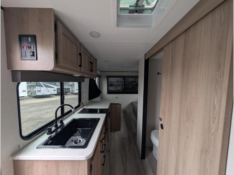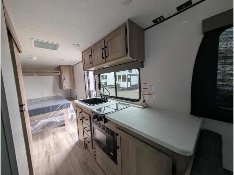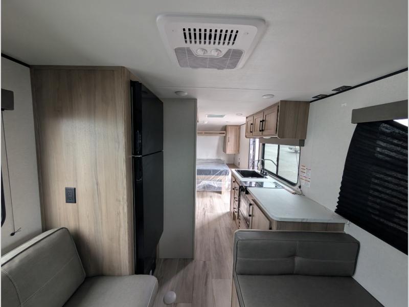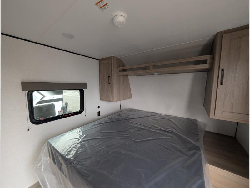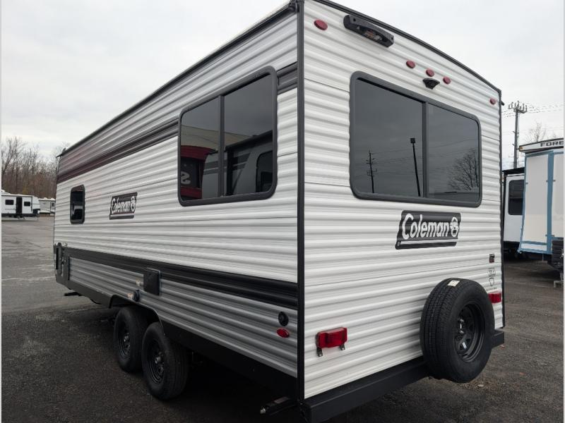 With any Coleman travel trailer, you will experience Keystone's quality throughout, plus enjoy lightweight towing to the campground or RV park. There is a walkable roof, tinted safety glass windows, and a power awning outdoors for an inviting space to relax. The friction hinge entry door is another convenience you'll appreciate, and there is Furrion backup camera prep if you want the option to make parking easier. Inside, you'll find blackout night shades, a 6' 8" ceiling height, bedside outlets, and many more comforts.