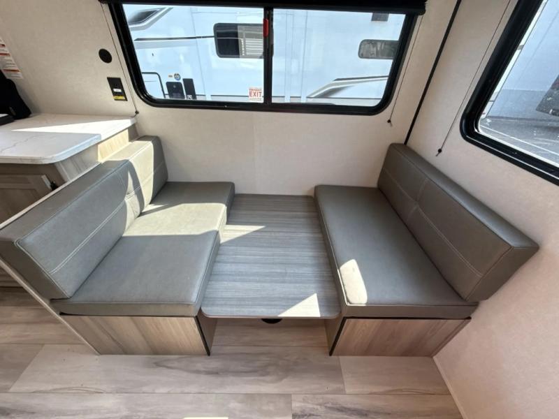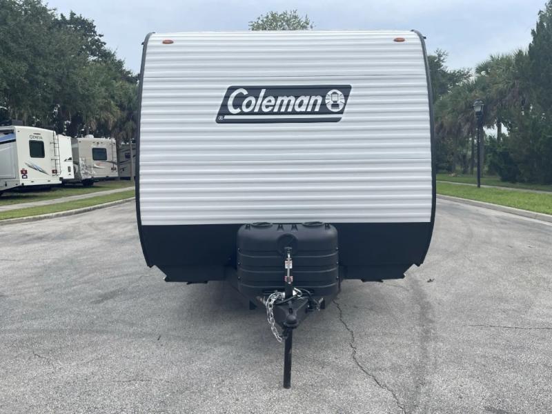 With any Coleman travel trailer, you will experience Keystone's quality throughout, plus enjoy lightweight towing to the campground or RV park. There is a walkable roof, tinted safety glass windows, and a power awning outdoors for an inviting space to relax. The friction hinge entry door is another convenience you'll appreciate, and there is Furrion backup camera prep if you want the option to make parking easier. Inside, you'll find blackout night shades, a 6' 8" ceiling height, bedside outlets, and many more comforts.
