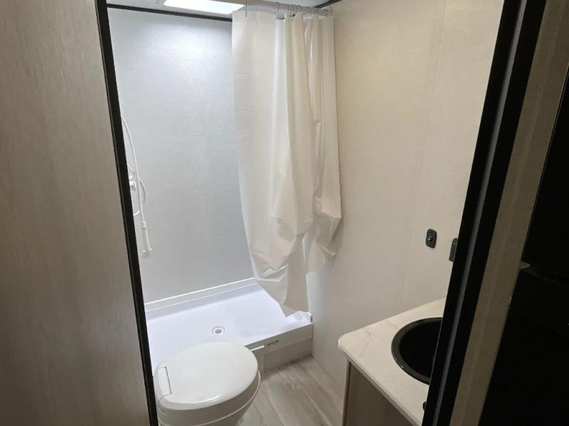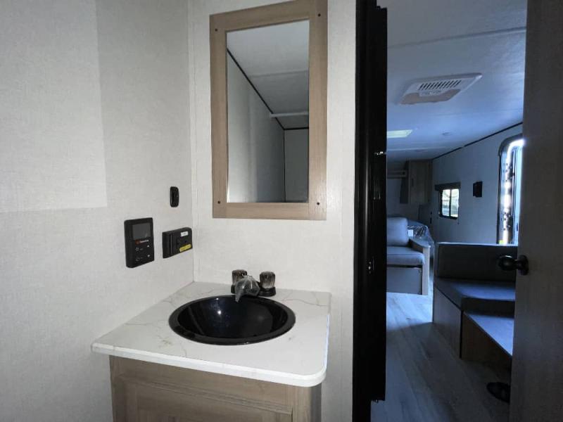 With any Coleman travel trailer, you will experience Keystone's quality throughout, plus enjoy lightweight towing to the campground or RV park. There is a walkable roof, tinted safety glass windows, and a power awning outdoors for an inviting space to relax. The friction hinge entry door is another convenience you'll appreciate, and there is Furrion backup camera prep if you want the option to make parking easier. Inside, you'll find blackout night shades, a 6' 8" ceiling height, bedside outlets, and many more comforts.