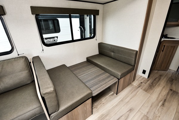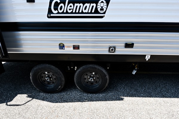 With any Coleman travel trailer, you will experience Keystone's quality throughout, plus enjoy lightweight towing to the campground or RV park. There is a walkable roof, tinted safety glass windows, and a power awning outdoors for an inviting space to relax. The friction hinge entry door is another convenience you'll appreciate, and there is Furrion backup camera prep if you want the option to make parking easier. Inside, you'll find blackout night shades, a 6' 8" ceiling height, bedside outlets, and many more comforts.