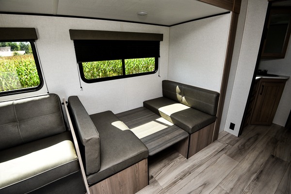 With any Coleman travel trailer, you will experience Keystone's quality throughout, plus enjoy lightweight towing to the campground or RV park. There is a walkable roof, tinted safety glass windows, and a power awning outdoors for an inviting space to relax. The friction hinge entry door is another convenience you'll appreciate, and there is Furrion backup camera prep if you want the option to make parking easier. Inside, you'll find blackout night shades, a 6' 8" ceiling height, bedside outlets, and many more comforts.