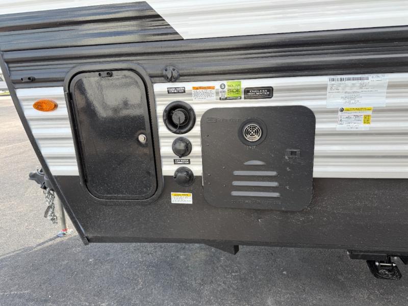 The Coleman Lantern travel trailers by Keystone include innovative features for the outdoor enthusiasts! They are built with a smooth front metal, a walkable roof, and a one-piece heated and enclosed underbelly that will help extend your camping season. Additional exterior features include a shower with hot and cold water, quick drop stabilizer jacks and a power tongue jack, plus a full pass-through storage with extra tall doors. The interior is just as impressive with its blackout night shades, solid surface kitchen countertops, bedside outlets, and extra large 30" x 40" shower to name a few comforts. Each travel trailer also includes a Suburban tankless water heater for endless hot showers, plus Keystones Exclusives such as in-floor heating ducts, Tru-fit slide construction, and more!