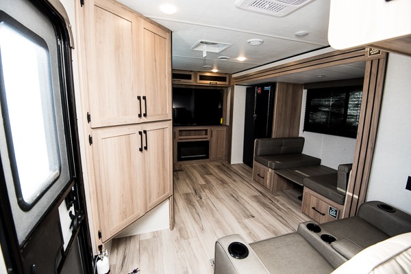 This Coleman Lantern is built for four-season enjoyment with smooth front metal, a fully walkable roof and a heated, enclosed underbelly that protects tanks and lines. Quick-drop stabilizer jacks and a power tongue jack make setup at camp a breeze, and the extra-tall pass-through storage keeps chairs and gear neatly organized. Keystone’s exclusive in-floor heating ducts, Tru-Fit slide construction and color-coded unified wiring ensure long-term durability and comfort. Visit 417 RV in Gloucester, Ontario, to experience this feature-packed couples coach firsthand!