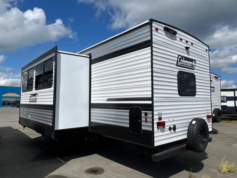 The Coleman Lantern travel trailers by Keystone include innovative features for the outdoor enthusiasts! They are built with a smooth front metal, a walkable roof, and a one-piece heated and enclosed underbelly that will help extend your camping season. Additional exterior features include a shower with hot and cold water, quick drop stabilizer jacks and a power tongue jack, plus a full pass-through storage with extra tall doors. The interior is just as impressive with its blackout night shades, solid surface kitchen countertops, bedside outlets, and extra large 30" x 40" shower to name a few comforts. Each travel trailer also includes a Suburban tankless water heater for endless hot showers, plus Keystones Exclusives such as in-floor heating ducts, Tru-fit slide construction, and more!