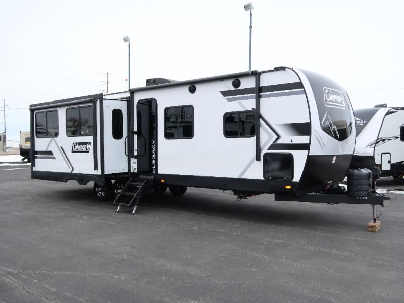 With any Coleman Legacy travel trailer by Keystone, you will find added features to make each camping experience one to remember! There is a painted fiberglass front cap with an LED light, a walkable roof, tinted safety glass windows, plus a power tongue jack and electric stabilizer jacks for easy set up. Head inside to enjoy a 6' 10" ceiling height, blackout roller shades, a stainless steel kitchen sink, and an Oxygenics Fury showerhead for added comfort. Each model also features Keystone Exclusives, such as color-coded unified wiring, Tuf-Loc thermoplastic duct joiners, and an I-beam frame with stamped steel cross-members and outriggers for added strength.