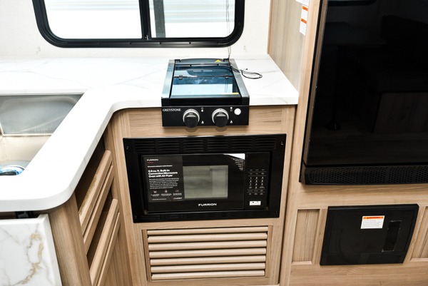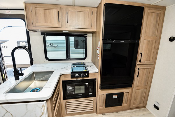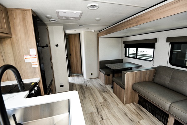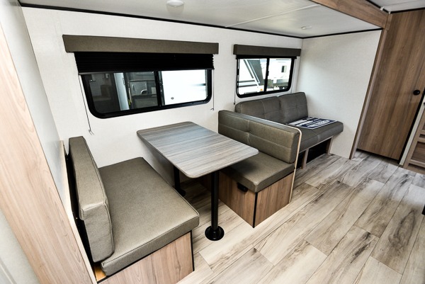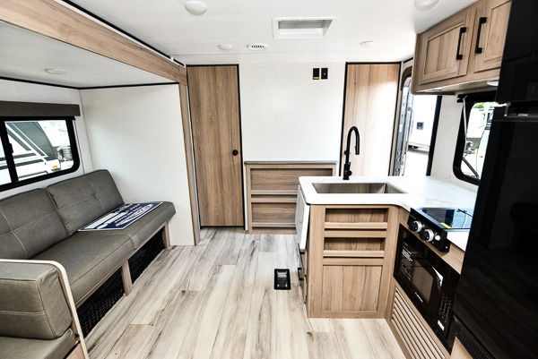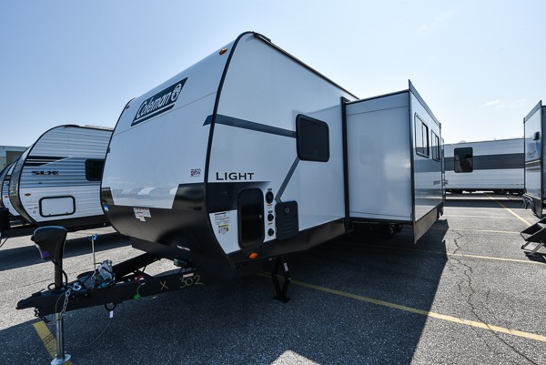 With any Coleman Light travel trailer, you will experience Keystone's quality throughout, plus enjoy lightweight towing to the campground or RV park. There is a .040" smooth front metal, tinted safety glass windows, and a power awning outdoors for an inviting space to relax. The friction hinge entry door is another convenience you'll appreciate, and there is Furrion backup camera prep if you want the option to make parking easier. Inside, you'll find blackout night shades, a 6' 6" ceiling height, bedside outlets, and many more comforts.