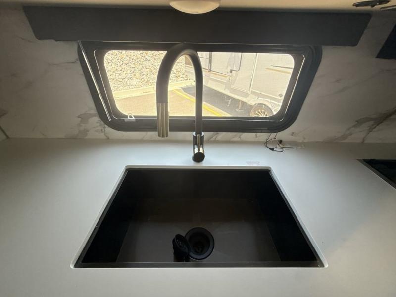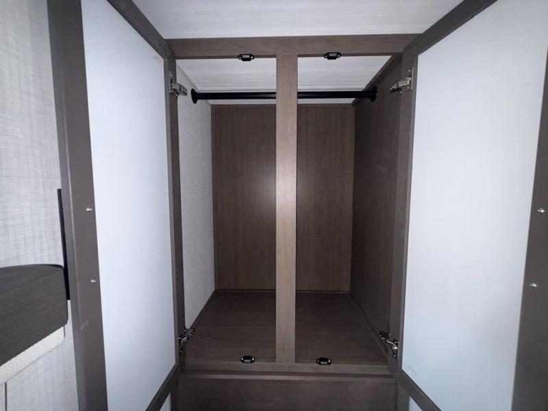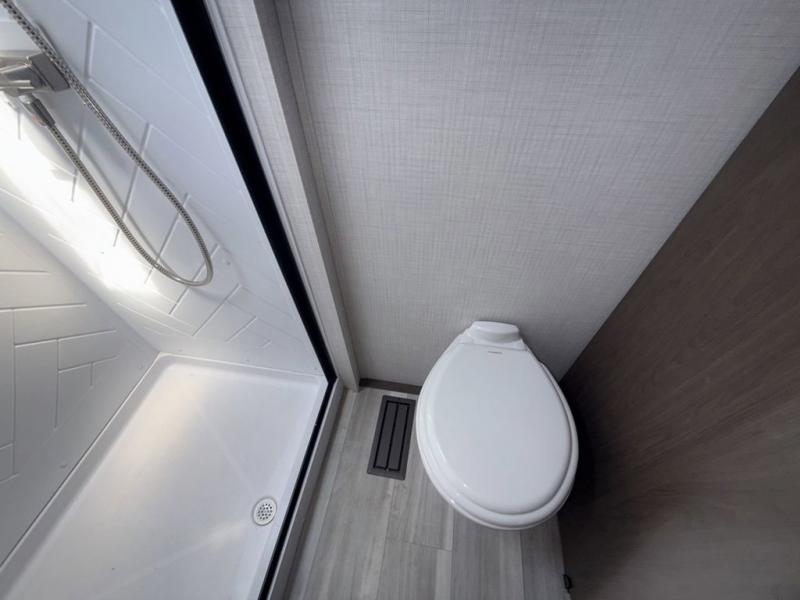 The Cougar Sport structural I-beam frame with stamped steel cross-members and outriggers, plus its laminated sidewalls with five-sided aluminum superstructure and Alpha Super Flex roof membrane are what active RVers love about the construction of the Cougar line. The Cougar Sport models are no exception when it comes to a great package, as well as being smaller and lighter weight than their big brother Cougar models. A one-piece, heated and enclosed polypropylene underbelly means a longer camping season. On the inside, residential shaker style hardwood cabinet doors and decorative crown molding, plus seamless pressed countertops and an on-demand water heater will make your unit feel even more like home. You are also sure to appreciate the shiplap style decorative accent wall behind the bed, a porcelain foot flush toilet in the bathroom, plus residential kitchen hardware, and so much more.
