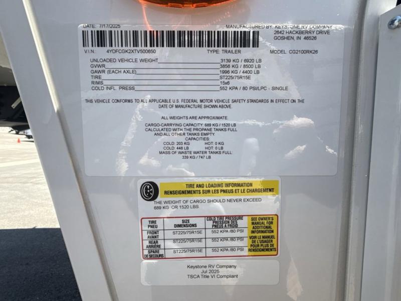 New 2026 Keystone RV Cougar 2100RK Fifth Wheel