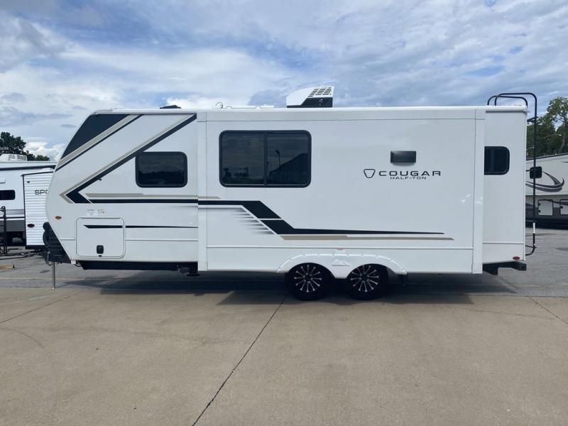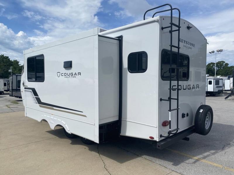 The Keystone Cougar Half-Ton fifth wheel and travel trailers are known as one of America's favorites for a reason! Some of those reasons are the exclusive features that come from Keystone, like the Winegard Air 360+ omni-directional rooftop antenna, the in-floor heating ducts, and the HyperCore composite wall construction with Vixen Fibrogloss high-gloss finish. The Cougar Half-Ton has a Climate Guard protection package with heat-deflecting white sidewalls, two roof attic vents, PEX plumbing and more to enjoy four season camping. Inside, you'll love the dimmable lighting, night roller shades throughout, shower skylight, and bedside USB outlets to keep your electronics charged.