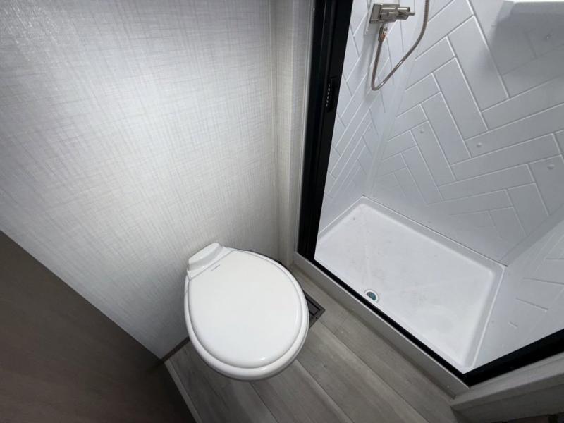 The Cougar Sport structural I-beam frame with stamped steel cross-members and outriggers, plus its AlphaPly roof membrane are what active RVers love about the construction of the Cougar line. The Cougar Sport models are no exception when it comes to a great package, as well as being smaller and lighter weight than their big brother Cougar models. A one-piece, heated and enclosed polypropylene underbelly will add protection against the elements, and the electric stabilizer jacks will provide more stability. On the inside, residential shaker style hardwood cabinet doors and decorative crown molding, plus seamless pressed countertops and an on-demand water heater will make your unit feel even more like home. You are also sure to appreciate the shiplap style decorative accent wall behind the bed, a porcelain foot flush toilet in the bathroom, plus residential kitchen hardware, and so much more.