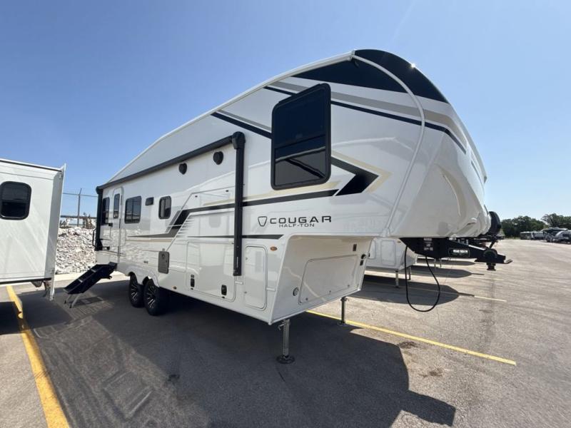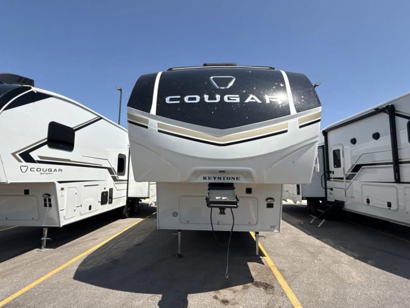 The Keystone Cougar Half-Ton fifth wheel and travel trailers are known as one of America's favorites for a reason! Some of those reasons are the exclusive features that come from Keystone, like the Winegard Air 360+ omni-directional rooftop antenna, the in-floor heating ducts, and the HyperCore composite wall construction with Vixen Fibrogloss high-gloss finish. The Cougar Half-Ton has a Climate Guard protection package with heat-deflecting white sidewalls, two roof attic vents, PEX plumbing and more to enjoy four season camping. Inside, you'll love the dimmable lighting, night roller shades throughout, shower skylight, and bedside USB outlets to keep your electronics charged.