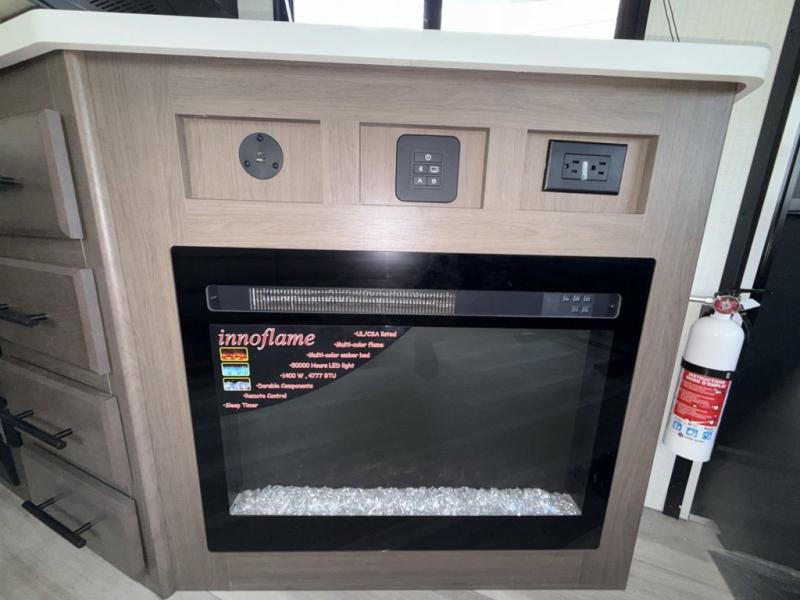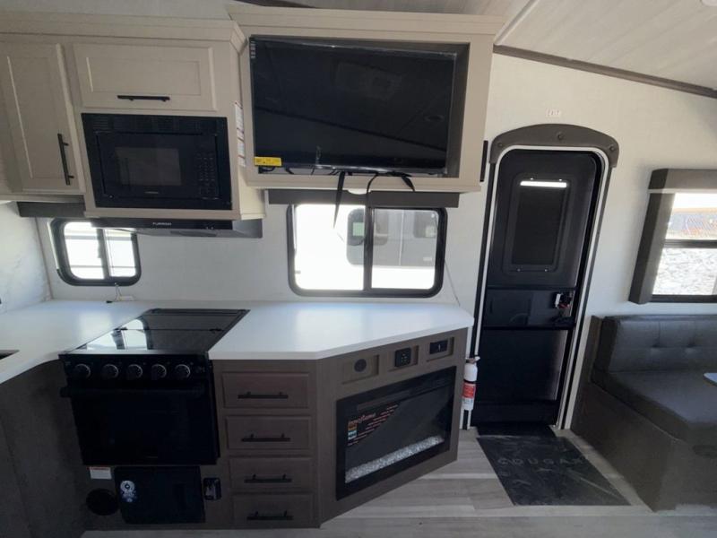 Spend your weekends in comfort with this Cougar Half-Ton fifth wheel! A full bathroom with a linen closet and shower with seat will provide convenience no matter where you've chosen to camp. You'll also be grateful to find a full kitchen with a 21" Furrion range with Piezo ignition and microwave so that you can get dinner ready in no time at all, and the private bedroom up front is where you will want to be at the end of a long day. You'll also love the fireplace in the main living area to make your space feel more like home!