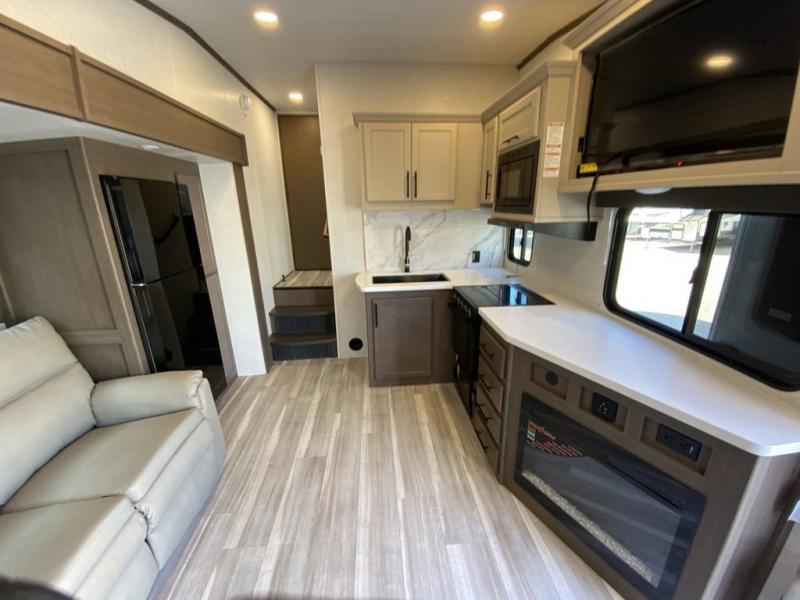 Spend your weekends in comfort with this Cougar Half-Ton fifth wheel! A full bathroom with a linen closet and shower with seat will provide convenience no matter where you've chosen to camp. You'll also be grateful to find a full kitchen with a 21" Furrion range with Piezo ignition and microwave so that you can get dinner ready in no time at all, and the private bedroom up front is where you will want to be at the end of a long day. You'll also love the fireplace in the main living area to make your space feel more like home!