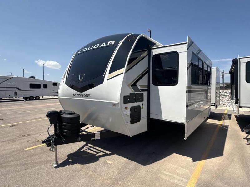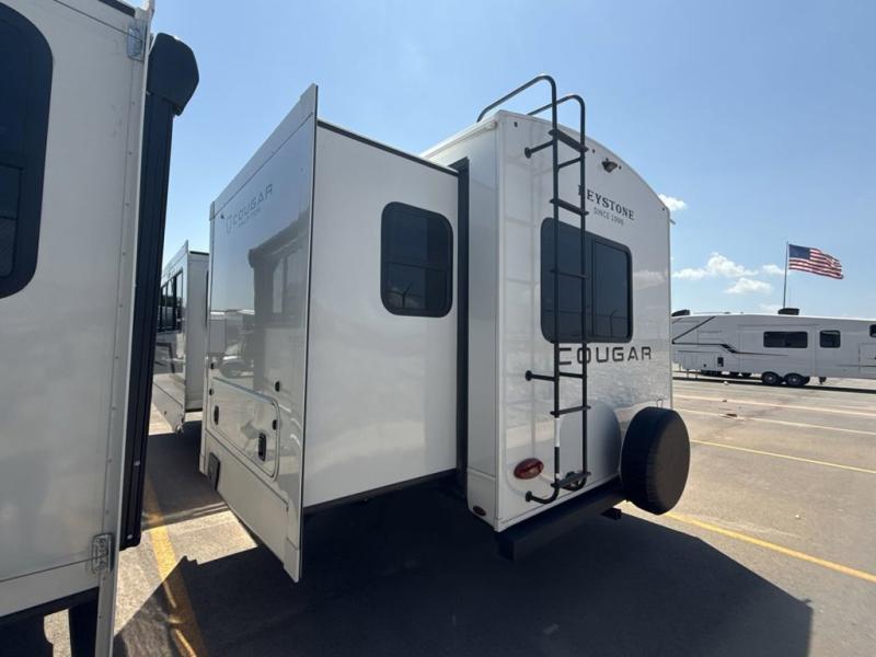 The Keystone Cougar Half-Ton fifth wheel and travel trailers are known as one of America's favorites for a reason! Some of those reasons are the exclusive features that come from Keystone, like the Winegard Air 360+ omni-directional rooftop antenna, the in-floor heating ducts, and the HyperCore composite wall construction with Vixen Fibrogloss high-gloss finish. The Cougar Half-Ton has a Climate Guard protection package with heat-deflecting white sidewalls, two roof attic vents, PEX plumbing and more to enjoy four season camping. Inside, you'll love the dimmable lighting, night roller shades throughout, shower skylight, and bedside USB outlets to keep your electronics charged.