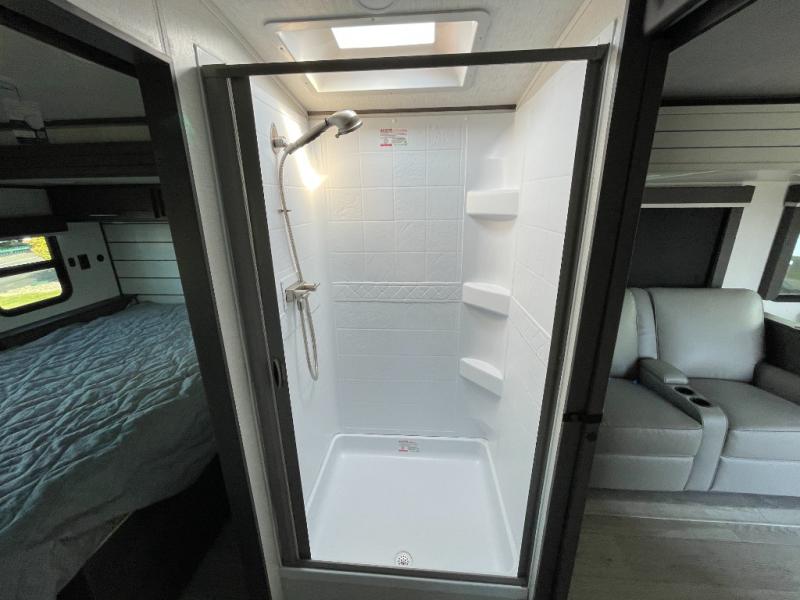 The Keystone Cougar Half-Ton fifth wheel and travel trailers are known as one of America's favorites for a reason! Some of those reasons are the exclusive features that come from Keystone, like the Winegard Air 360+ omni-directional rooftop antenna, the in-floor heating ducts, and the HyperCore composite wall construction with Vixen Fibrogloss high-gloss finish. The Cougar Half-Ton has a Climate Guard protection package with heat-deflecting white sidewalls, two roof attic vents, PEX plumbing and more to enjoy four season camping. Inside, you'll love the dimmable lighting, night roller shades throughout, shower skylight, and bedside USB outlets to keep your electronics charged.