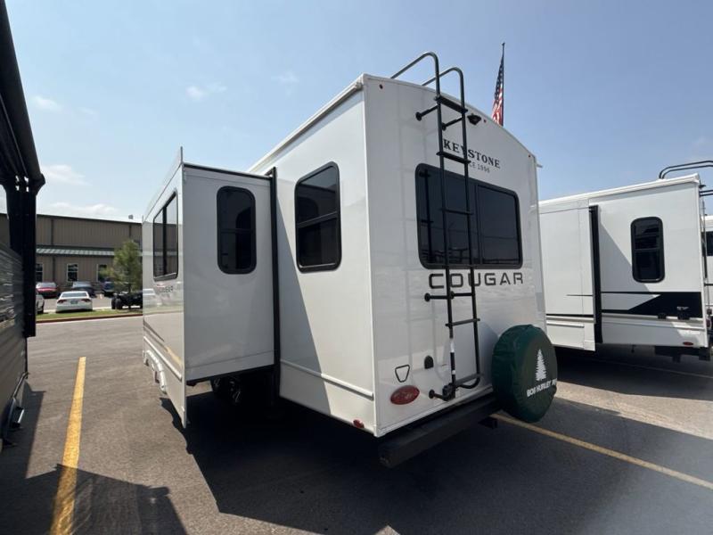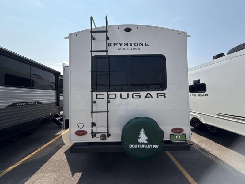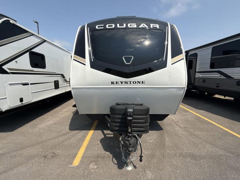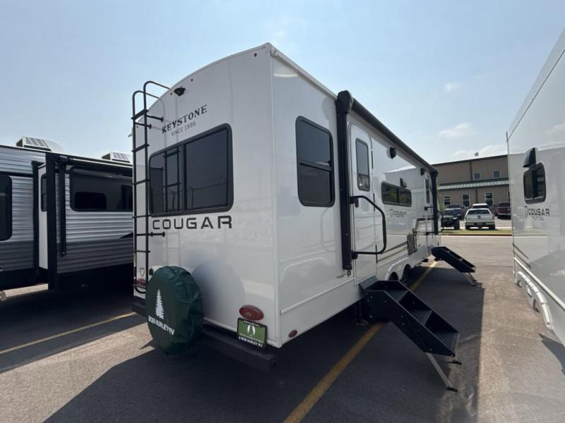 The Keystone Cougar Half-Ton fifth wheel and travel trailers are known as one of America's favorites for a reason! Some of those reasons are the exclusive features that come from Keystone, like the Winegard Air 360+ omni-directional rooftop antenna, the in-floor heating ducts, and the HyperCore composite wall construction with Vixen Fibrogloss high-gloss finish. The Cougar Half-Ton has a Climate Guard protection package with heat-deflecting white sidewalls, two roof attic vents, PEX plumbing and more to enjoy four season camping. Inside, you'll love the dimmable lighting, night roller shades throughout, shower skylight, and bedside USB outlets to keep your electronics charged.