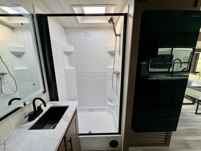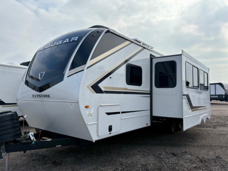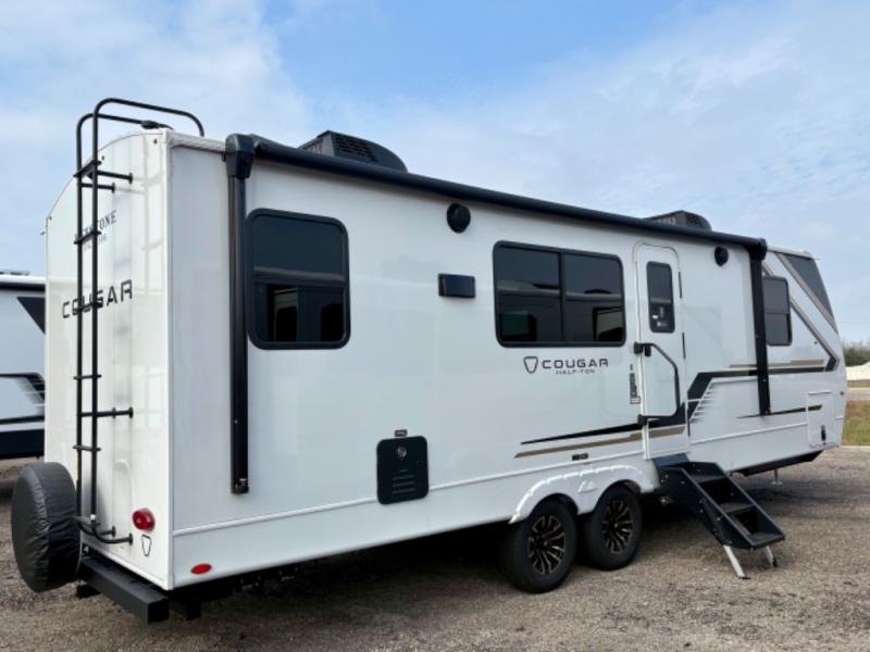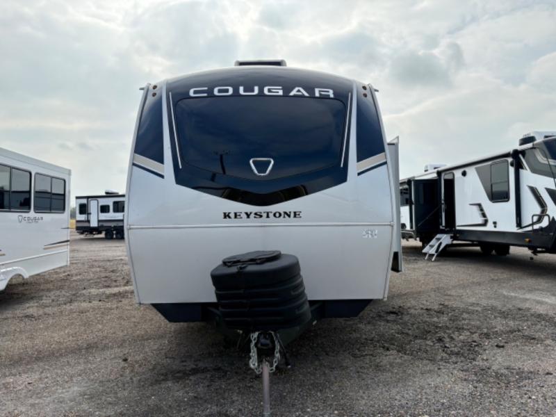 The Keystone Cougar Half-Ton fifth wheel and travel trailers are known as one of America's favorites for a reason! Some of those reasons are the exclusive features that come from Keystone, like the Winegard Air 360+ omni-directional rooftop antenna, the in-floor heating ducts, and the HyperCore composite wall construction with Vixen Fibrogloss high-gloss finish. The Cougar Half-Ton has a Climate Guard protection package with heat-deflecting white sidewalls, two roof attic vents, PEX plumbing and more to enjoy four season camping. Inside, you'll love the dimmable lighting, night roller shades throughout, shower skylight, and bedside USB outlets to keep your electronics charged.