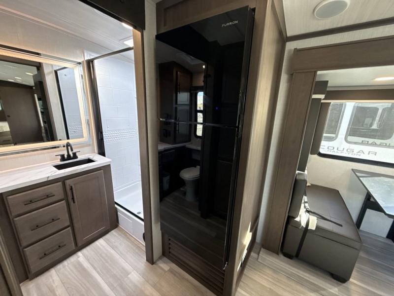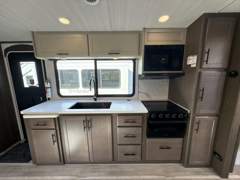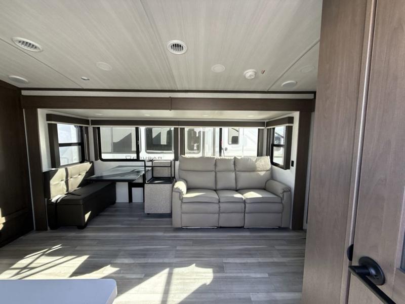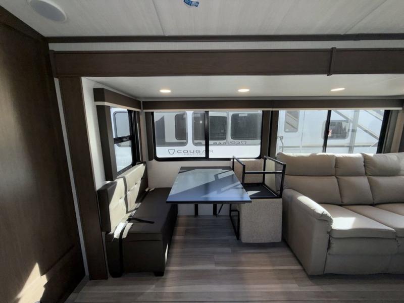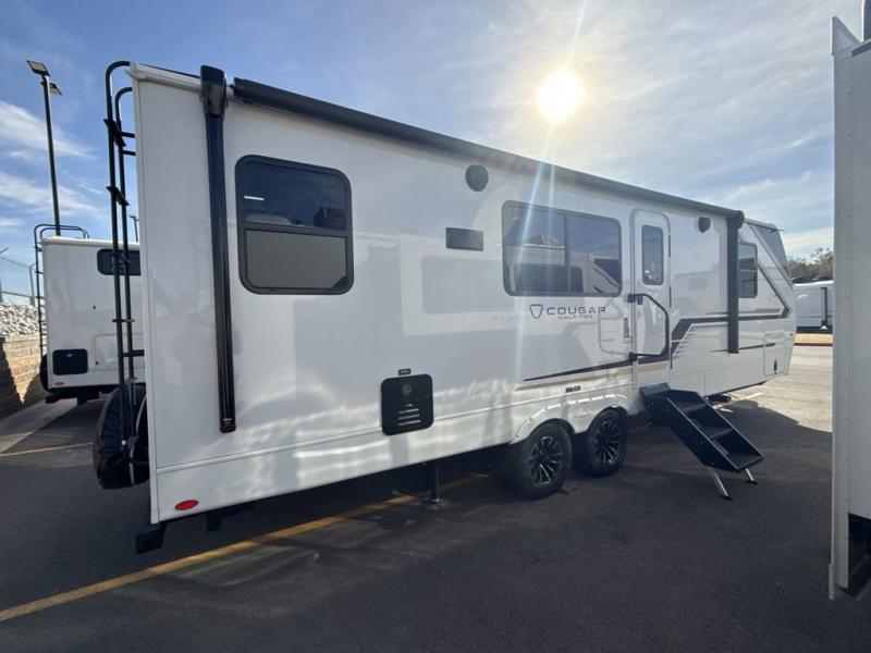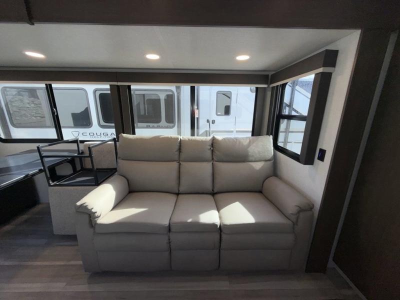 The Keystone Cougar Half-Ton fifth wheel and travel trailers are known as one of America's favorites for a reason! Some of those reasons are the exclusive features that come from Keystone, like the Winegard Air 360+ omni-directional rooftop antenna, the in-floor heating ducts, and the HyperCore composite wall construction with Vixen Fibrogloss high-gloss finish. The Cougar Half-Ton has a Climate Guard protection package with heat-deflecting white sidewalls, two roof attic vents, PEX plumbing and more to enjoy four season camping. Inside, you'll love the dimmable lighting, night roller shades throughout, shower skylight, and bedside USB outlets to keep your electronics charged.
