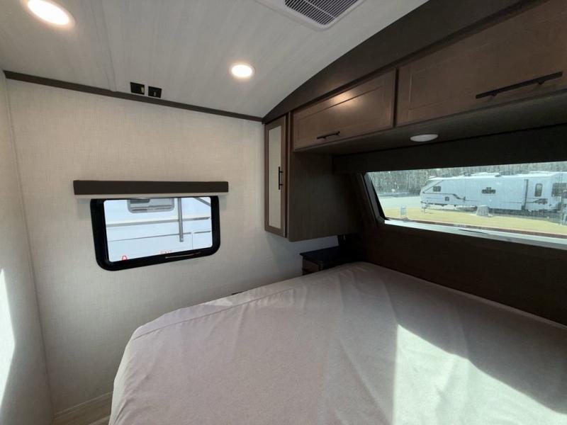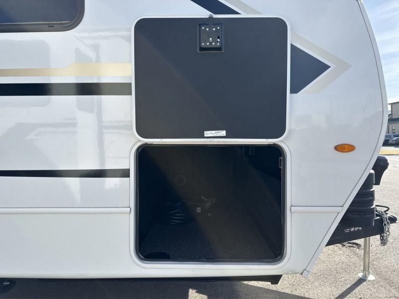 This travel trailer with a large slide out gives your crew plenty of space to relax. You also have a second entry door that is located in the master bedroom as an added convenience. The main living area offers you plenty of seating and dining space with its tri-fold sleeper sofa and booth dinette. You will surely enjoy sleeping on your own king bed at night and closing the door for privacy when you have overnight guests. This unit also includes an outdoor kitchen prep area and an exterior mini refrigerator for cold drinks outside!