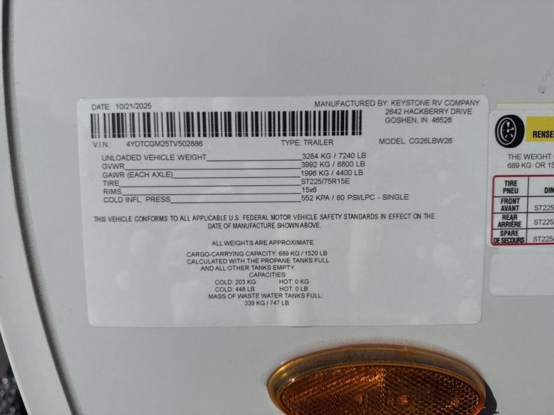 New 2026 Keystone RV Cougar 26LBW Travel Trailer