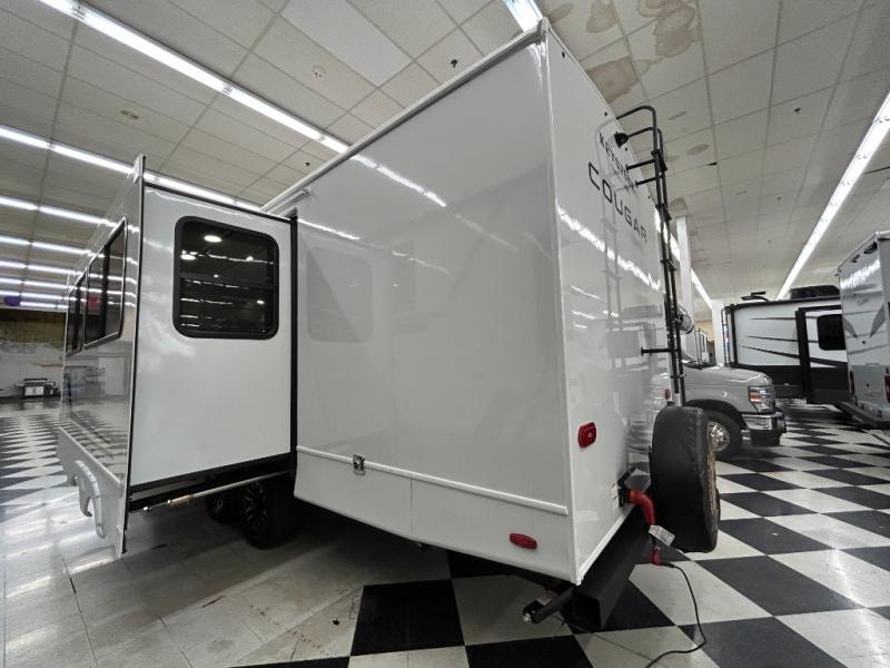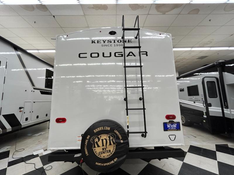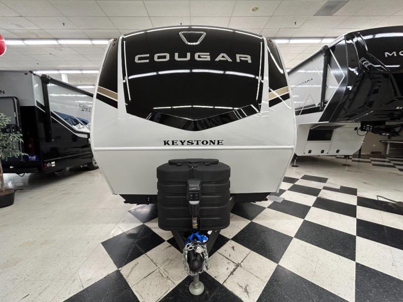 The Keystone Cougar Half-Ton fifth wheel and travel trailers are known as one of America's favorites for a reason! Some of those reasons are the exclusive features that come from Keystone, like the Winegard Air 360+ omni-directional rooftop antenna, the in-floor heating ducts, and the HyperCore composite wall construction with Vixen Fibrogloss high-gloss finish. The Cougar Half-Ton has a Climate Guard protection package with heat-deflecting white sidewalls, two roof attic vents, PEX plumbing and more to enjoy four season camping. Inside, you'll love the dimmable lighting, night roller shades throughout, shower skylight, and bedside USB outlets to keep your electronics charged.
