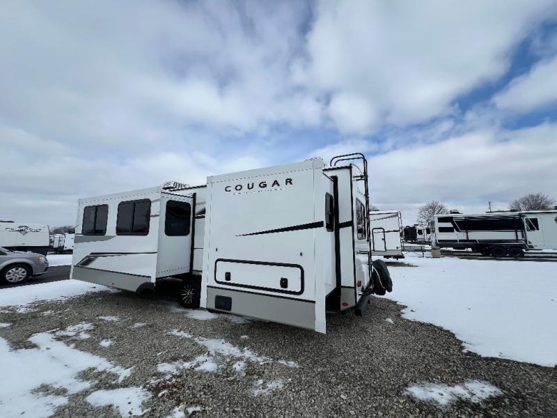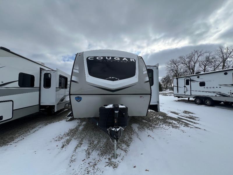 The Keystone Cougar Half-Ton fifth wheel and travel trailers are known as one of America's favorites for a reason! Some of those reasons are the exclusive features that come from Keystone, like the Winegard Air 360+ omni-directional rooftop antenna, the in-floor heating ducts, and the Hyper Deck flooring. The Cougar Half-Ton has a Climate Guard protection package to keep you safe during inclement weather, along with two roof attic vents, PEX plumbing and more. Use the 21" Furrion range with Piezo ignition to create all of those familiar meals from home, and enjoy endless hot showers with the Girard tankless on-demand water heater!