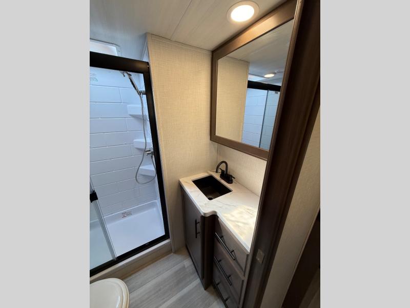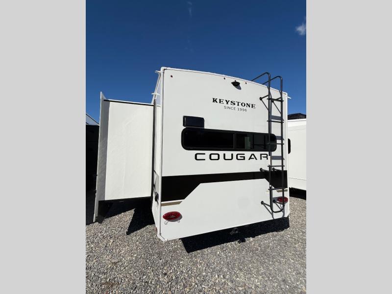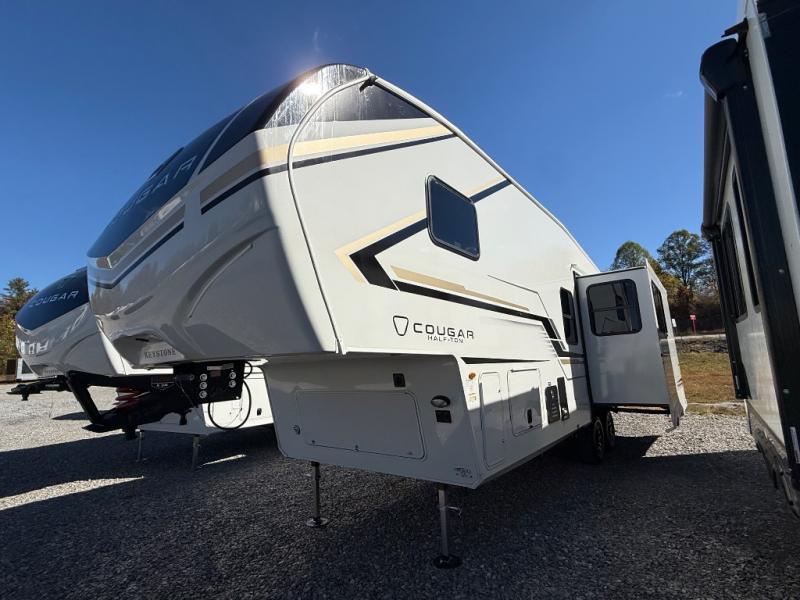 The Keystone Cougar Half-Ton fifth wheel and travel trailers are known as one of America's favorites for a reason! Some of those reasons are the exclusive features that come from Keystone, like the Winegard Air 360+ omni-directional rooftop antenna, the in-floor heating ducts, and the HyperCore composite wall construction with Vixen Fibrogloss high-gloss finish. The Cougar Half-Ton has a Climate Guard protection package with heat-deflecting white sidewalls, two roof attic vents, PEX plumbing and more to enjoy four season camping. Inside, you'll love the dimmable lighting, night roller shades throughout, shower skylight, and bedside USB outlets to keep your electronics charged.