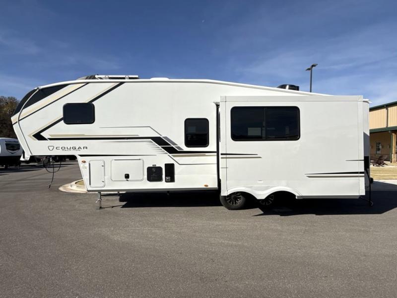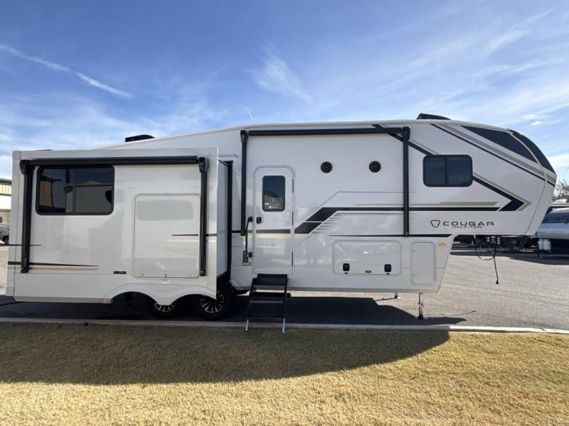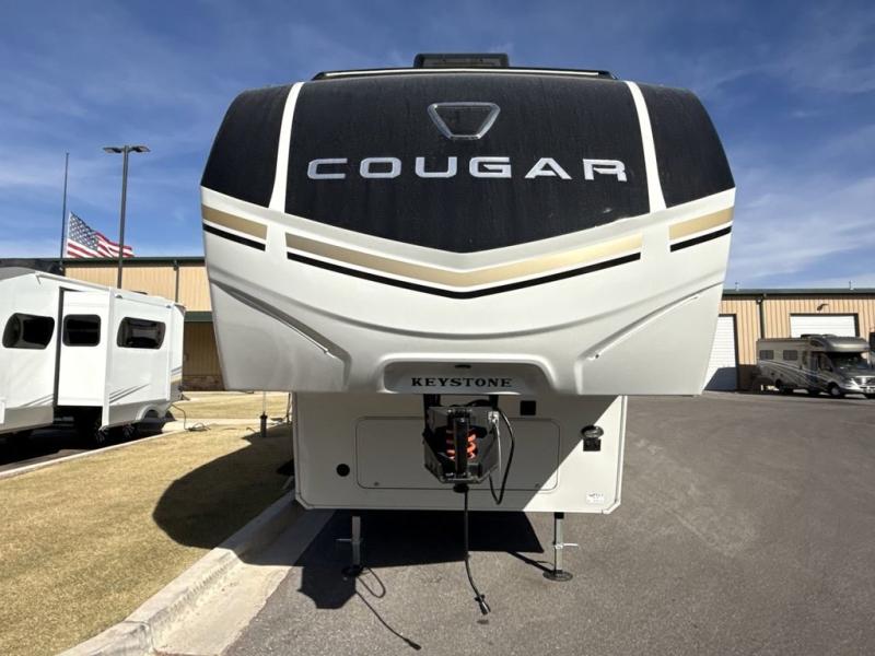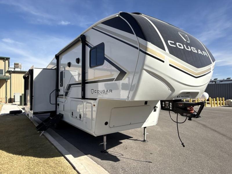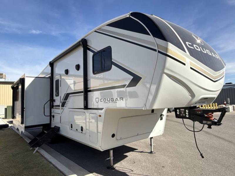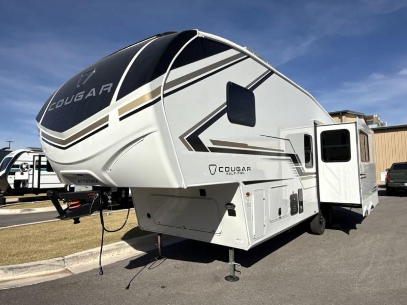 The Keystone Cougar Half-Ton fifth wheel and travel trailers are known as one of America's favorites for a reason! Some of those reasons are the exclusive features that come from Keystone, like the Winegard Air 360+ omni-directional rooftop antenna, the in-floor heating ducts, and the HyperCore composite wall construction with Vixen Fibrogloss high-gloss finish. The Cougar Half-Ton has a Climate Guard protection package with heat-deflecting white sidewalls, two roof attic vents, PEX plumbing and more to enjoy four season camping. Inside, you'll love the dimmable lighting, night roller shades throughout, shower skylight, and bedside USB outlets to keep your electronics charged.