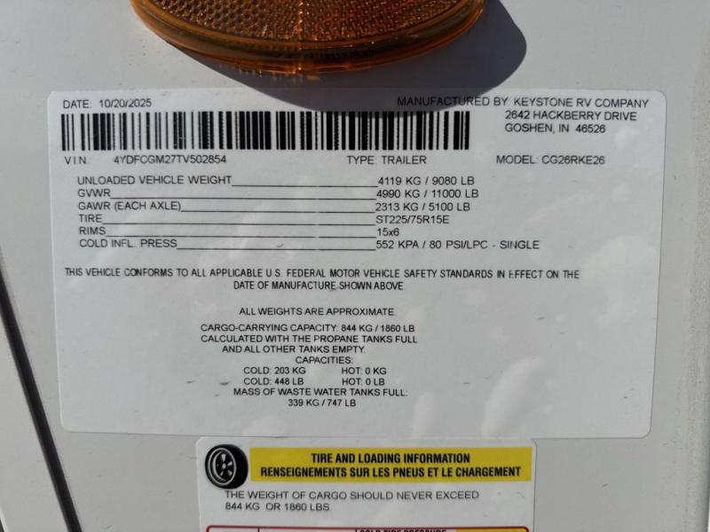 New 2026 Keystone RV Cougar 26RKE Fifth Wheel