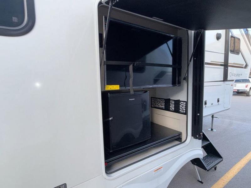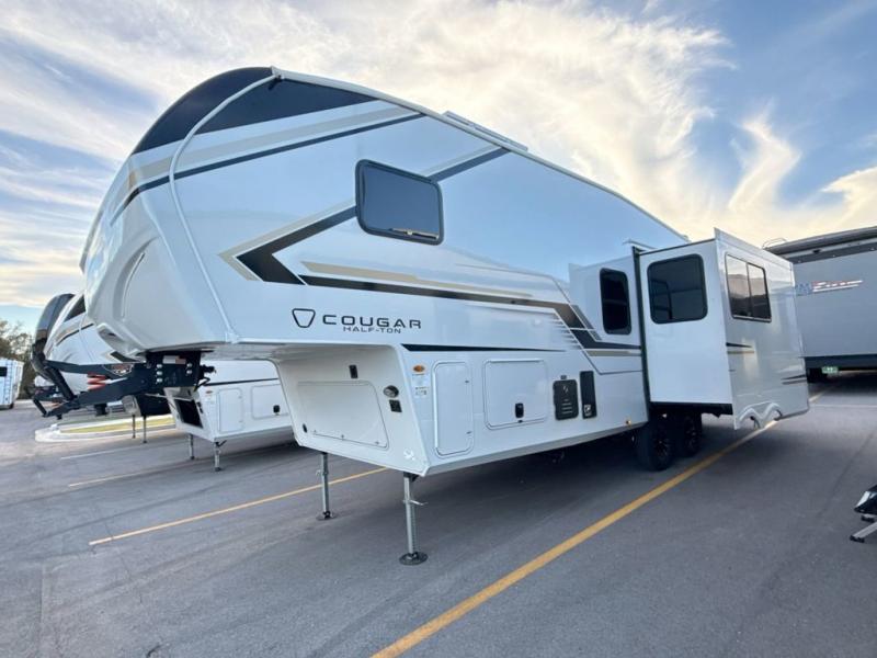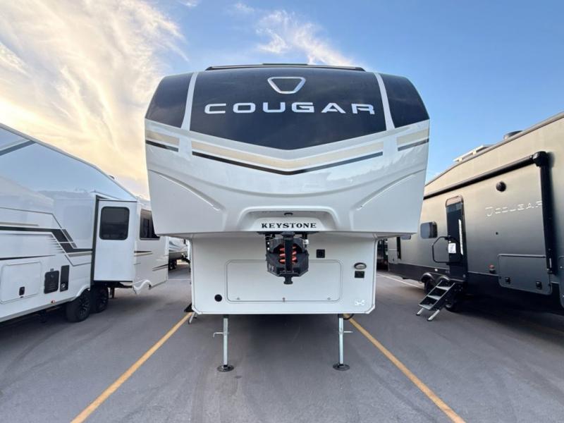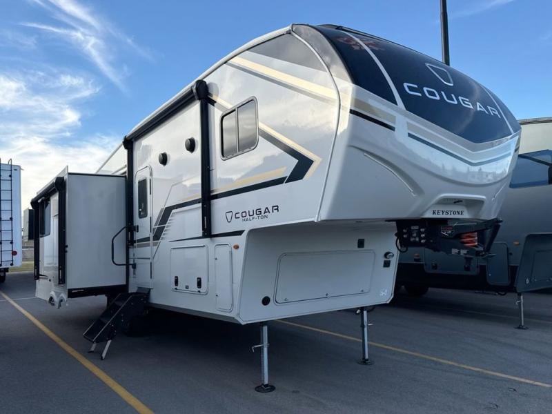 The Keystone Cougar Half-Ton fifth wheel and travel trailers are known as one of America's favorites for a reason! Some of those reasons are the exclusive features that come from Keystone, like the Winegard Air 360+ omni-directional rooftop antenna, the in-floor heating ducts, and the HyperCore composite wall construction with Vixen Fibrogloss high-gloss finish. The Cougar Half-Ton has a Climate Guard protection package with heat-deflecting white sidewalls, two roof attic vents, PEX plumbing and more to enjoy four season camping. Inside, you'll love the dimmable lighting, night roller shades throughout, shower skylight, and bedside USB outlets to keep your electronics charged.