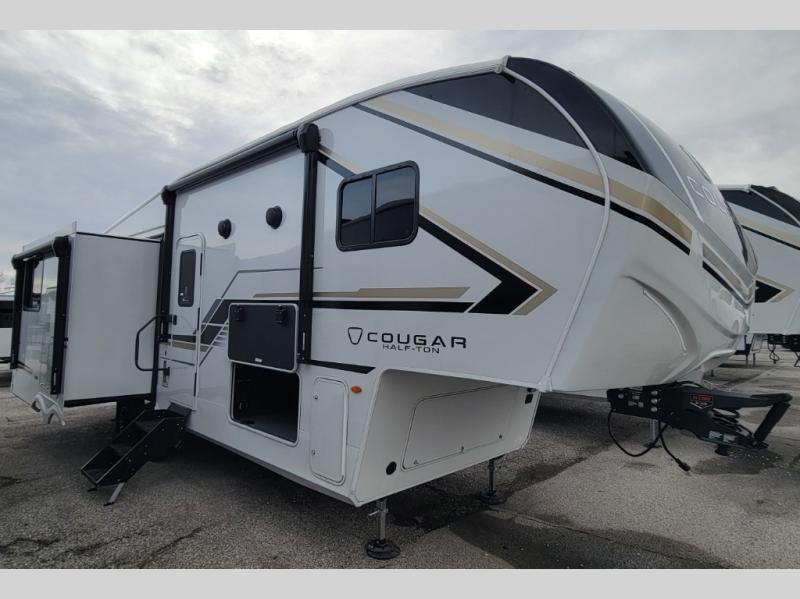 The Keystone Cougar Half-Ton fifth wheel and travel trailers are known as one of America's favorites for a reason! Some of those reasons are the exclusive features that come from Keystone, like the Winegard Air 360+ omni-directional rooftop antenna, the in-floor heating ducts, and the HyperCore composite wall construction with Vixen Fibrogloss high-gloss finish. The Cougar Half-Ton has a Climate Guard protection package with heat-deflecting white sidewalls, two roof attic vents, PEX plumbing and more to enjoy four season camping. Inside, you'll love the dimmable lighting, night roller shades throughout, shower skylight, and bedside USB outlets to keep your electronics charged.