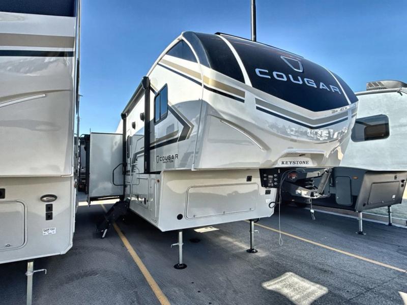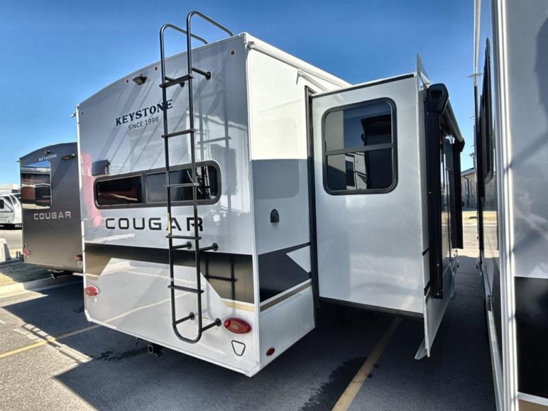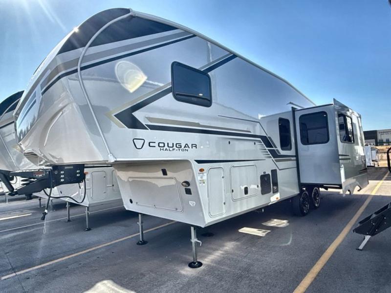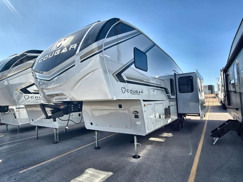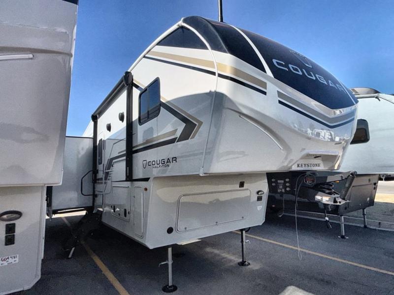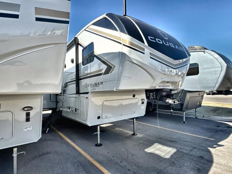 The Keystone Cougar Half-Ton fifth wheel and travel trailers are known as one of America's favorites for a reason! Some of those reasons are the exclusive features that come from Keystone, like the Winegard Air 360+ omni-directional rooftop antenna, the in-floor heating ducts, and the HyperCore composite wall construction with Vixen Fibrogloss high-gloss finish. The Cougar Half-Ton has a Climate Guard protection package with heat-deflecting white sidewalls, two roof attic vents, PEX plumbing and more to enjoy four season camping. Inside, you'll love the dimmable lighting, night roller shades throughout, shower skylight, and bedside USB outlets to keep your electronics charged.