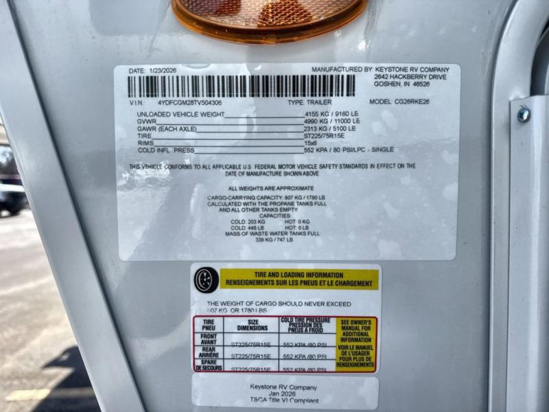 New 2026 Keystone RV Cougar 26RKE Fifth Wheel