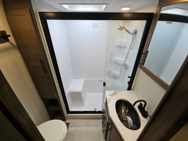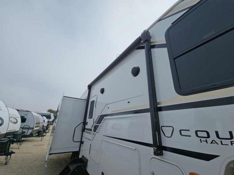 The Keystone Cougar Half-Ton fifth wheel and travel trailers are known as one of America's favorites for a reason! Some of those reasons are the exclusive features that come from Keystone, like the Winegard Air 360+ omni-directional rooftop antenna, the in-floor heating ducts, and the HyperCore composite wall construction with Vixen Fibrogloss high-gloss finish. The Cougar Half-Ton has a Climate Guard protection package with heat-deflecting white sidewalls, two roof attic vents, PEX plumbing and more to enjoy four season camping. Inside, you'll love the dimmable lighting, night roller shades throughout, shower skylight, and bedside USB outlets to keep your electronics charged.