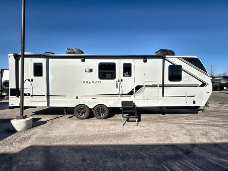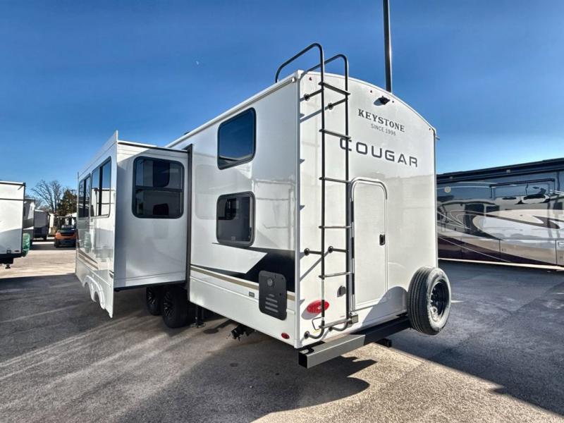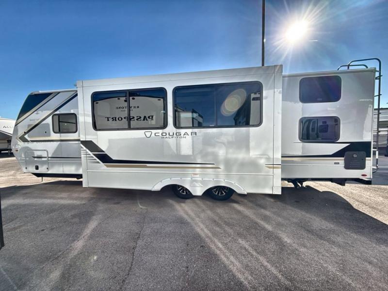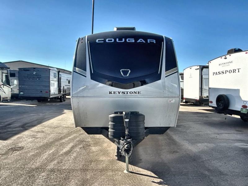 The Keystone Cougar Half-Ton fifth wheel and travel trailers are known as one of America's favorites for a reason! Some of those reasons are the exclusive features that come from Keystone, like the Winegard Air 360+ omni-directional rooftop antenna, the in-floor heating ducts, and the HyperCore composite wall construction with Vixen Fibrogloss high-gloss finish. The Cougar Half-Ton has a Climate Guard protection package with heat-deflecting white sidewalls, two roof attic vents, PEX plumbing and more to enjoy four season camping. Inside, you'll love the dimmable lighting, night roller shades throughout, shower skylight, and bedside USB outlets to keep your electronics charged.