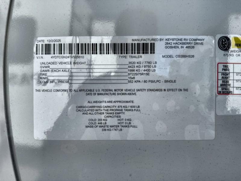New 2026 Keystone RV Cougar 28BHS Travel Trailer