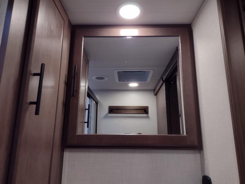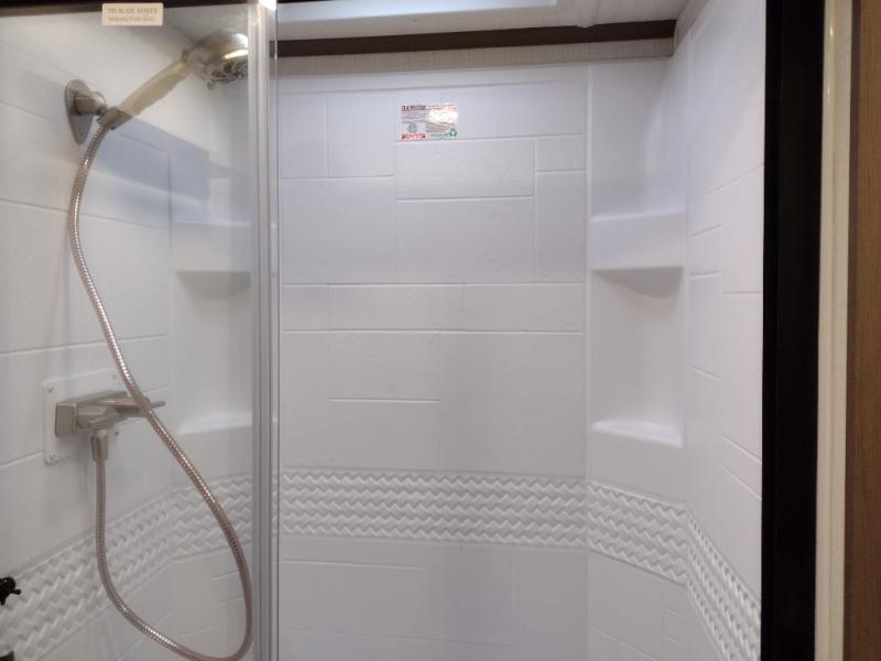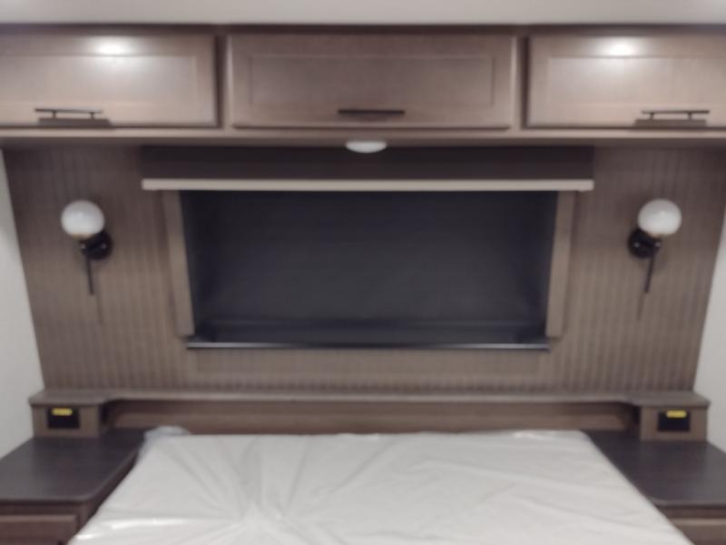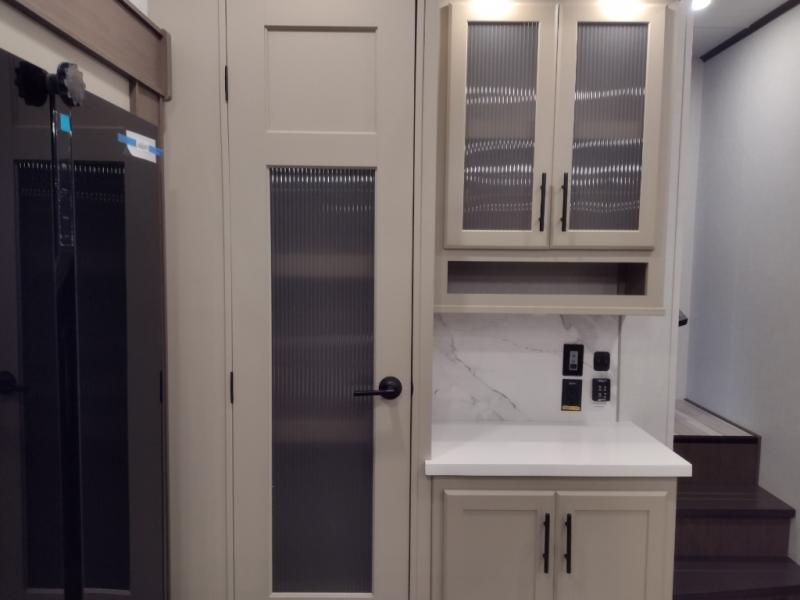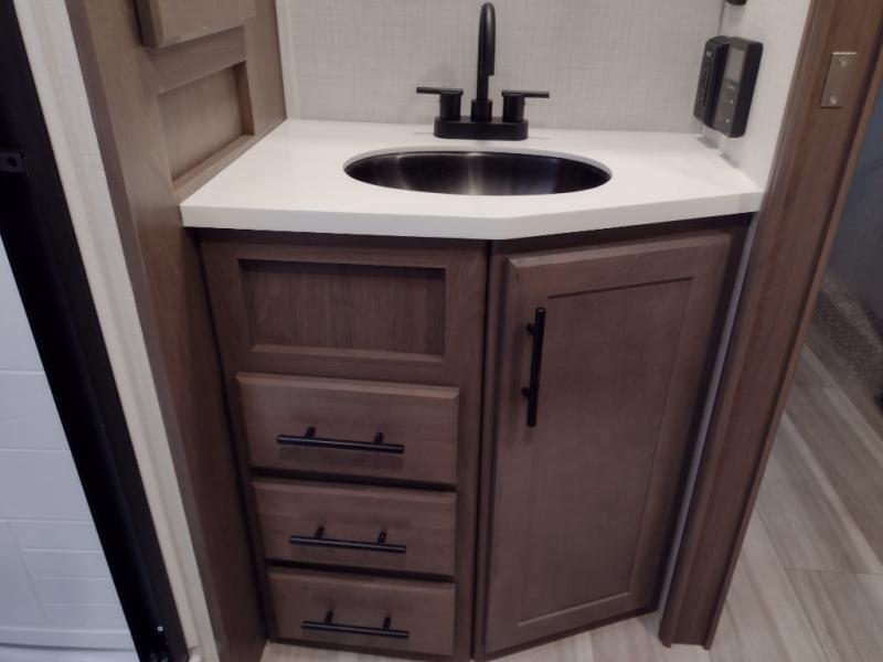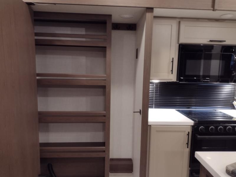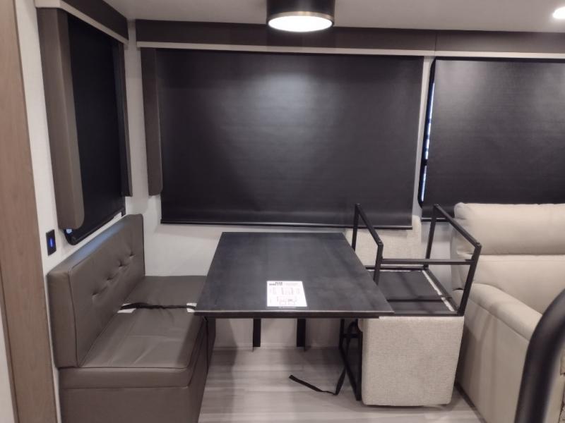 Gain some freedom to travel with this Cougar fifth wheel! You will be oh-so comfortable in the front private bedroom as you sleep on the queen-size bed, and the wardrobe slide will provide you with clothing storage. You'll be right next to the full bathroom while you're in the bedroom, so you can easily step inside the bathroom for a quick rinse in the 30" x 40" shower. The main living area offers you more space with its opposing slides, and you'll be able to get comfortable each evening on the tri-fold sleeper sofa and theater seating, or play a game at the booth dinette. There is also a pivoting entertainment door with a pantry and cordless vacuum prep!