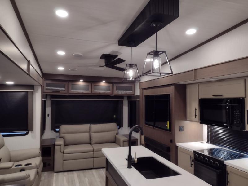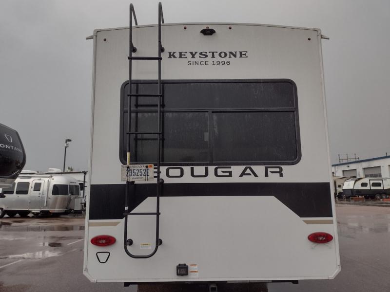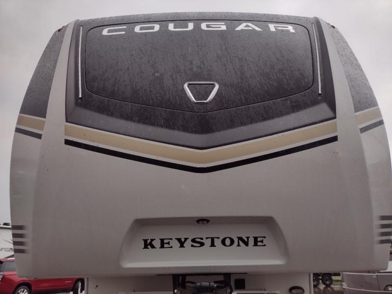 Spend more time having fun and less time worrying about your RV with the Keystone Cougar fifth wheel! These units have all that you will need for excellent vacations. The interior comes with 5/8" one-piece DynaSpan® flooring, tall slide outs for added comfort and head room, night roller shades throughout, and residential, shaker style hardwood cabinet doors and drawers. You will also enjoy decorative crown molding, a 5,500 BTU electric fireplace with thermostat control and remote, and a Max Air exhaust fan with rain sensor. The exterior is also fully outfitted with a convenience center, friction-hinge entry door, electric four-point auto leveling system, and slam-latch baggage doors. Each model is available with the optional Hero Edition. By choosing this edition, you can help support our nation's heros and their families by contributing to the Wounded Warrior Project. This optional package features an industry exclusive full-body paint matte finish, frameless windows, a glass entry door, blackout rims, and green LED exterior accent lighting; see dealer for more details!